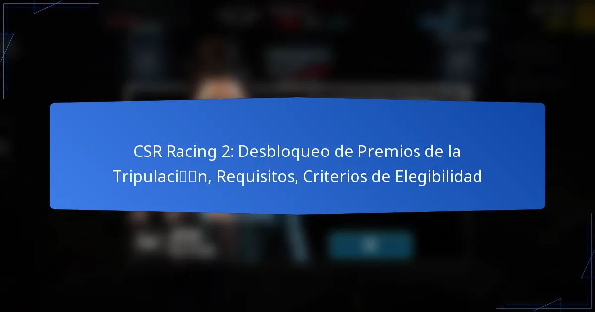 Para desbloquear premios de la tripulación en CSR Racing 2, los jugadores deben cumplir con criterios específicos relacionados con su nivel, rendimiento del automóvil y actividad del equipo. Comprender estos requisitos te ayudará a participar de manera efectiva en los eventos de la tripulación y maximizar tus recompensas.